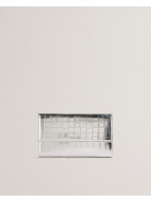 Women Ted Baker ALETHAI - Croc Effect Travel Organiser Wallets Silver | Australia 42851-MOPJ