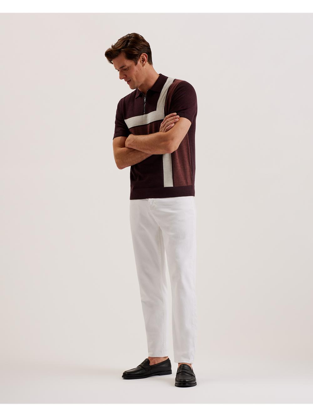Men Ted Baker AMBLER - Colour Block Zip Neck Wool Polos Shirts Maroon | Australia 51092-EDUL