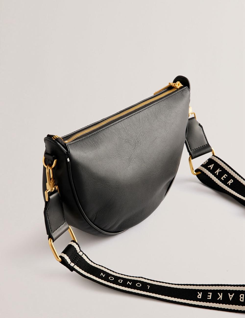 Women Ted Baker ESSINA - Webbing Half Moon Leather Crossbody Bags Black | Australia 64153-ZMVQ