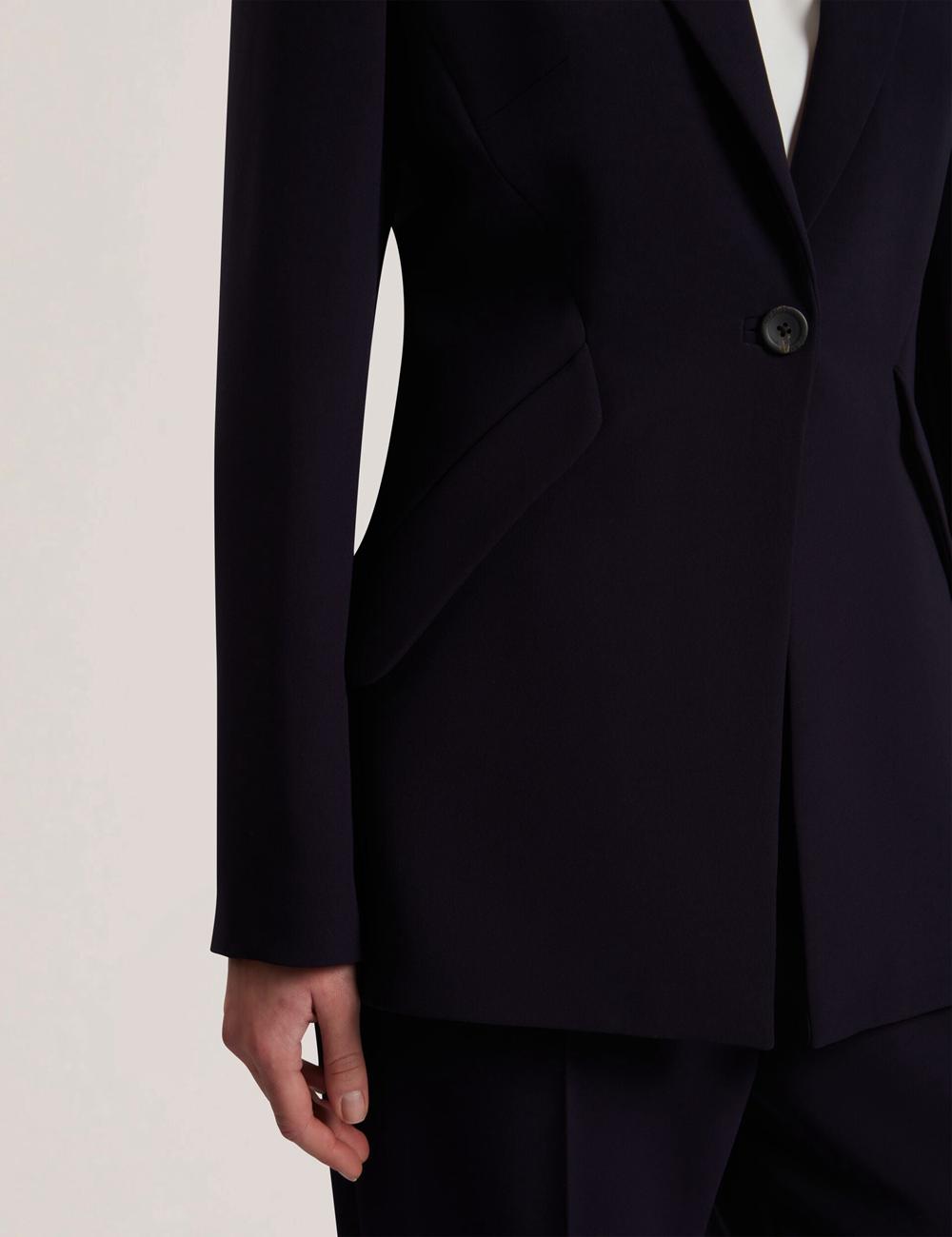 If your taste in tailoring includes flattering silhouettes, then MANABL is the jacket for you. The fitted design creates an hourglass silhouette, fastened with a single button to accentuate your shape even further. Add in the peak lapels and decorative pocket flaps, and you've got the ultimate power blazer.